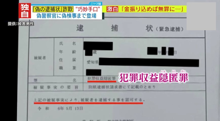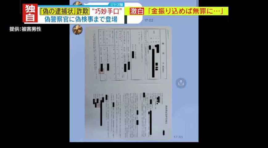 「実は私自身も容疑者扱いされているという話を受けて、実際に逮捕状が出ていますと、そういった画像がLINEを通して送られてくるという形です」