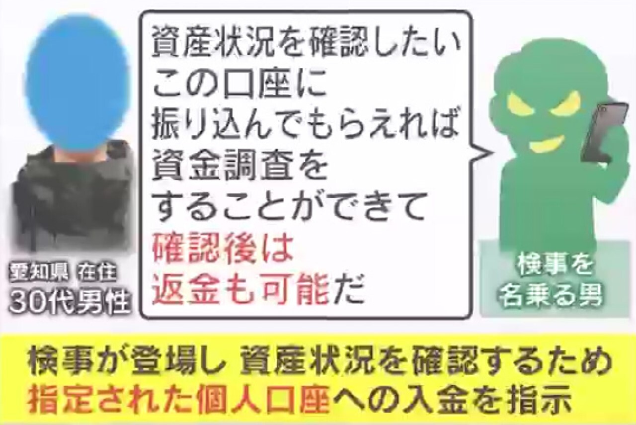 “検事を名乗る男”からは、「指定の口座に振り込めば、“資産調査”の上、無罪を証明できる」と言われ、さらに「入金の確認後には、返金も可能だ」と説明されたといいます。