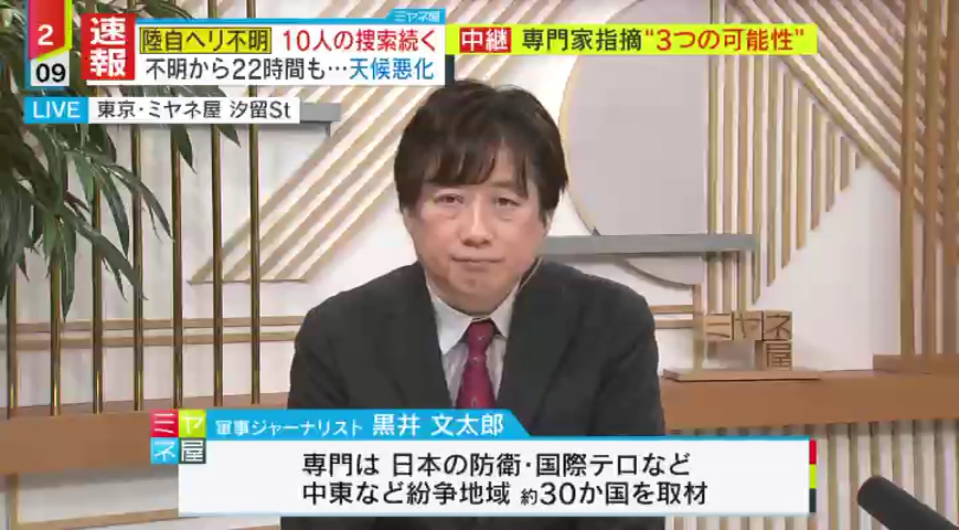 「状況は分かりませんが、何らかの事故で海上に墜ちたと言えます。ただ、今、『これが決定的原因だ』というのは、わからないです」