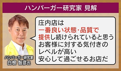 実際に食べてみて、白根氏は「庄内店は一番良い状態・品質で提供し続けられていると思う。お客様に対する気付きのレベルが高い。安心して過ごせるお店だ」との見解を示しています。