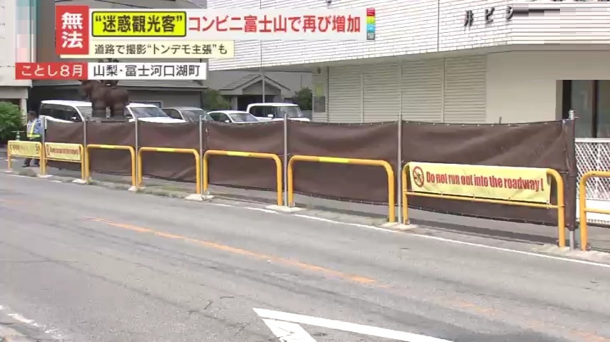 その対策として、町は2024年5月、富士山への視界を遮る高さ2.5メートルの幕を設置しました。いったんは鎮静化したものの、同年8月に台風の接近などを受けて幕が撤去されると、再び危険な横断など迷惑行為が横行するようになりました。
