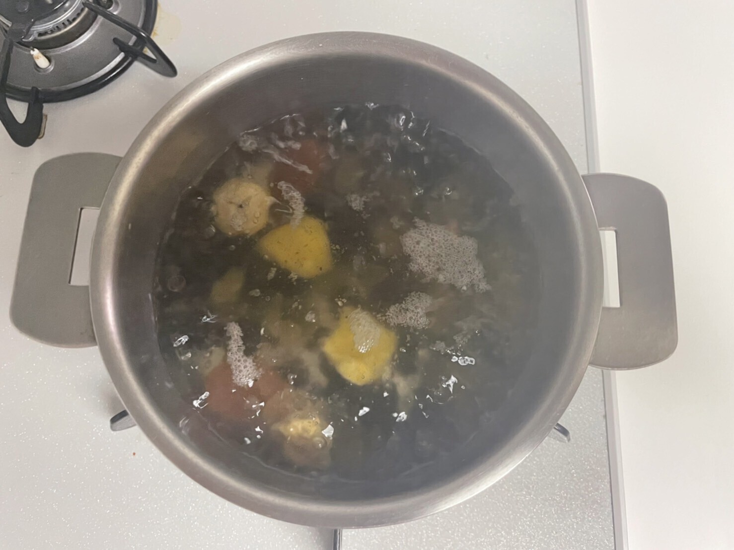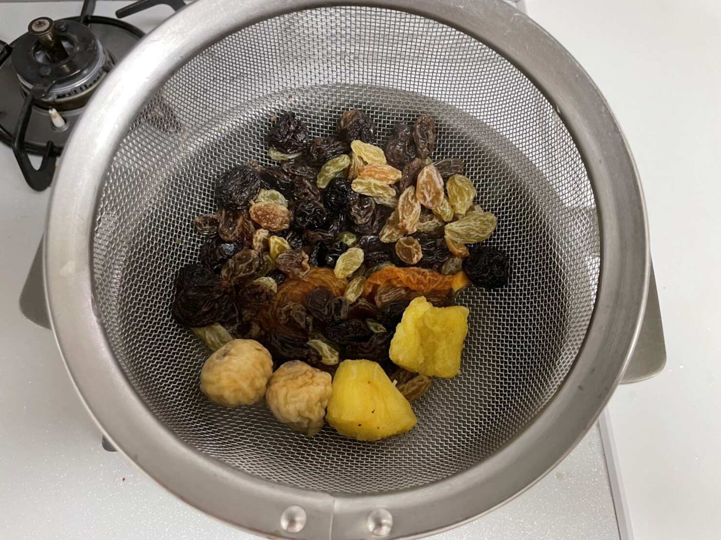 ①沸騰したお湯にドライフルーツをいれ30秒ほど茹でる