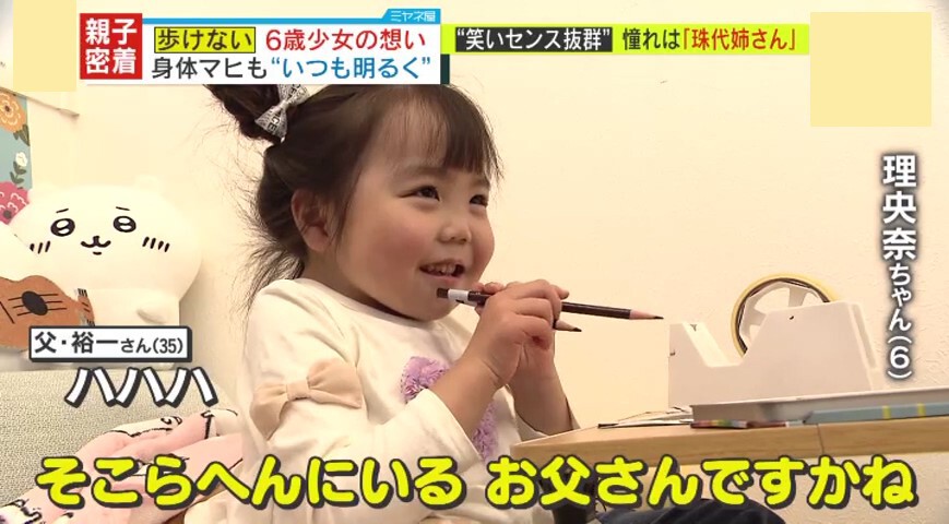 大好きな珠代さんと一緒にギャグを披露できて、大喜びの理央奈ちゃんでした。理央奈ちゃんには、佳寿美さんが言っていたように支援と理解が必要です。底抜けに明るく健気な理央奈ちゃんを、これからも見守りたいですね。