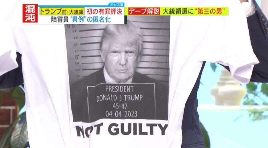 「(トランプ前・大統領は)自分は被害者だとずっとアピールしてきています。“NOT GUILTY”(無罪)と書いたTシャツを本人が売っています」