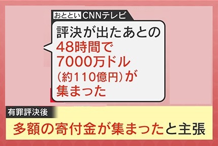 しかし、この有罪判決で、トランプ旋風が“再燃”しているという話があります。6月2日にトランプ前・大統領の二男の妻・ララ・トランプ氏がCNNテレビに出演し「評決が出たあとの48時間で7000万ドル(約110億円)が集まった」と話しました。