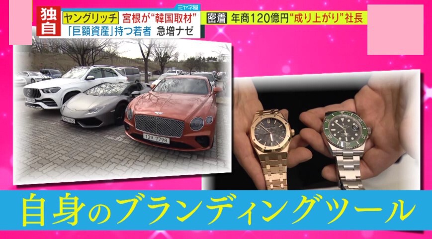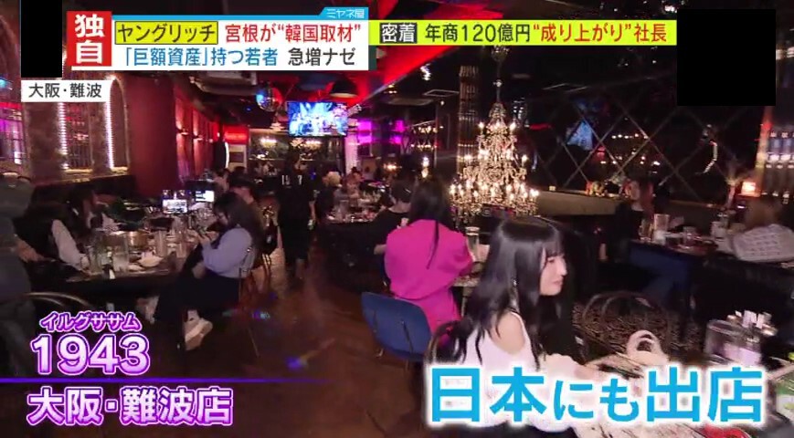 チェ氏が経営するのは、居酒屋「1943」。ミラーボールやシャンデリアなど、SNS映えする高級感あるインテリアが若者を中心に支持を集め、韓国全土に100店舗以上を展開する大人気の飲食店です。取材当日、約5000万円の超高級車に乗り、颯爽と現れたチェ氏。腕には高級腕時計が光ります。