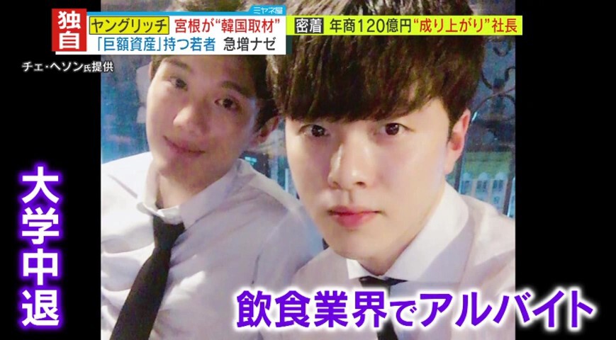 6つの事業を展開する会社社長チェ・ヘソン氏(30)は、年商120億円を売り上げるカリスマ経営者で、まるで芸能人のような人気ぶりです。彼のように、若くして巨万の富を得た若者たちを韓国では“ヤングリッチ”と呼び、メディア取材が殺到するなど大注目されています。しかし、彼は共働きの一般家庭の出身で、ドン底の貧乏生活も味わいました。いかにして彼は“ヤングリッチ”へと上り詰めたのでしょうか。