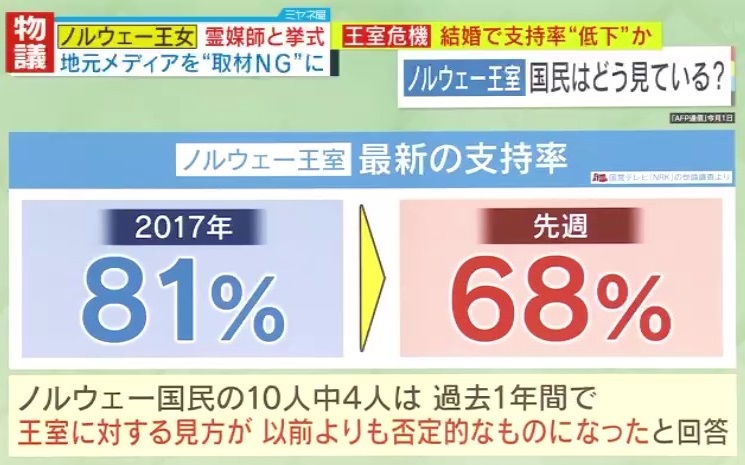 そんな中、2017年には81%だったノルウェー王室の支持率は、2024年8月末には68%となりました。ノルウェー国民の10人中4人は、過去1年間で「王室に対する見方が以前よりも否定的なものになった」と回答しています。