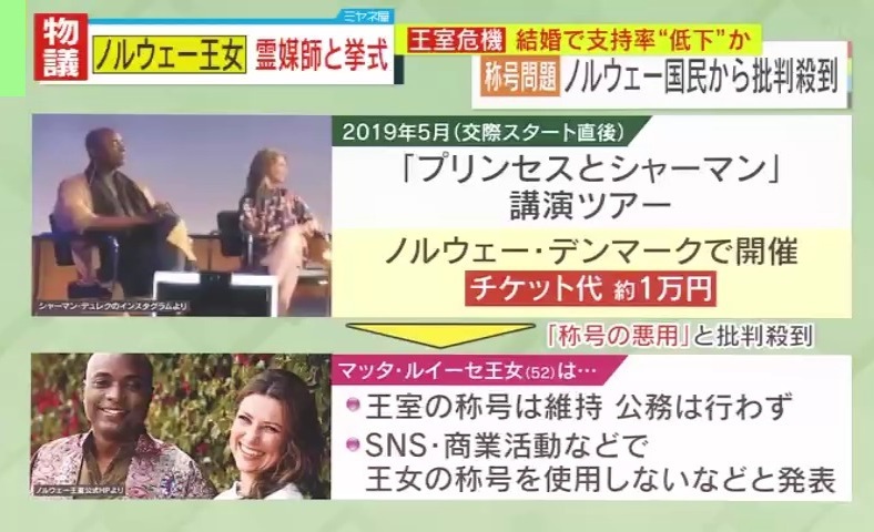 二人は交際スタート直後の2019年5月、『プリンセスとシャーマン』という講演ツアーをノルウェーとデンマークで開催。しかし、チケット代が約1万円だったことで、「称号を悪用している」と批判が殺到しました。