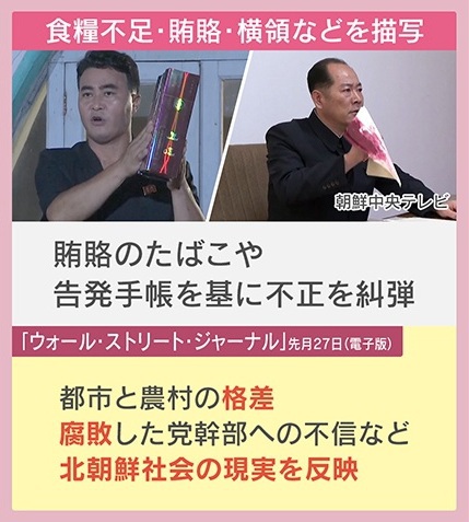 「そういったドラマは非常にマンネリ化していて、しかもリピート放送が多いので、見飽きていると思います。汚職や賄賂が描かれていますが、実際に入学や就職する際、あるいは労働党員になるときに、賄賂が必要だと指摘されています。こういったところが今の北朝鮮の問題点です」
