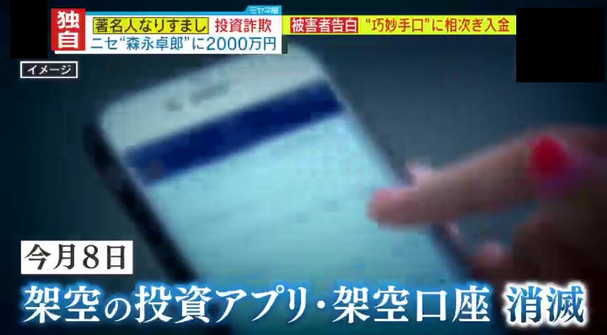4月初めには“投資アプリ”が消え、アプリ内の口座も全て消滅。実は投資アプリは架空のもので、ようやく騙されたことに気づいたといいます。