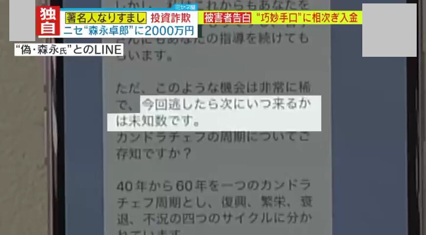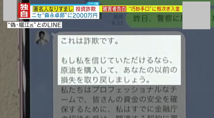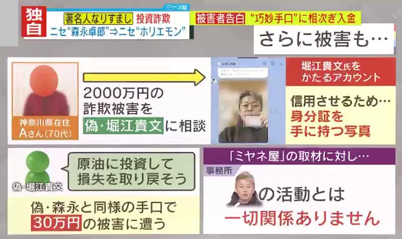 【独自取材】「私が一番バカでした」偽・森永卓郎氏と偽・堀江貴文氏に騙され2000万円以上を失った被害者が激白「自分は大丈夫と思っていた」 急増する“著名人なりすまし投資詐欺”…あなたがやり取りしているその有名人、本当に“公式”ですか?