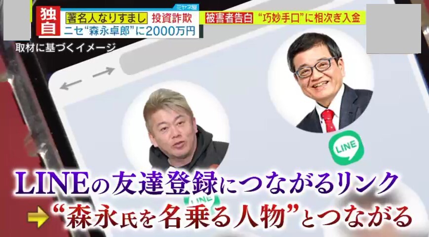 「自分が開いたホームページに顔写真が7~8人載っていて、そこに森永さんやホリエモンの名前があったんです。一個一個、顔の下にLINEの窓口があって」
