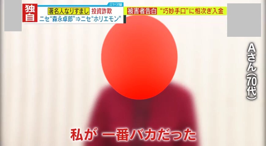 「私が一番バカでした」“森永卓郎氏を名乗る人物”のオススメ株に次々と振り込み、総額2000万円の被害に遭った女性 騙されたと気づいた後に頼ってしまったのは、“公式・堀江貴文”を名乗る人物