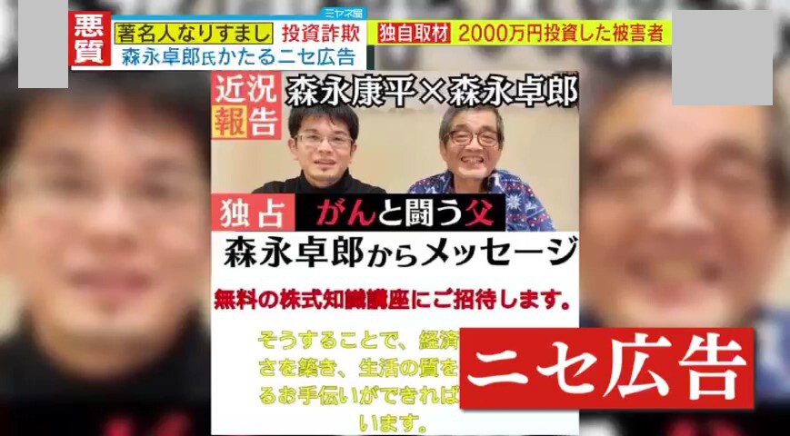 -『私は森永卓郎さんの金取引に参加しまして、騙されてしまいました』