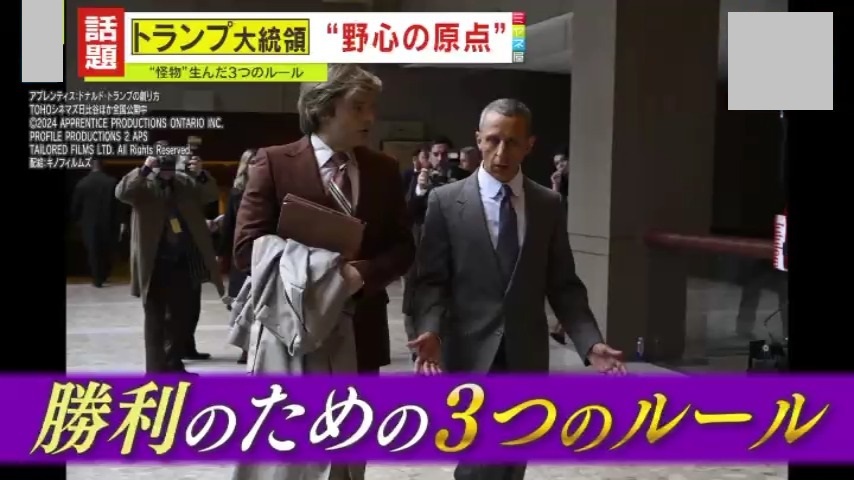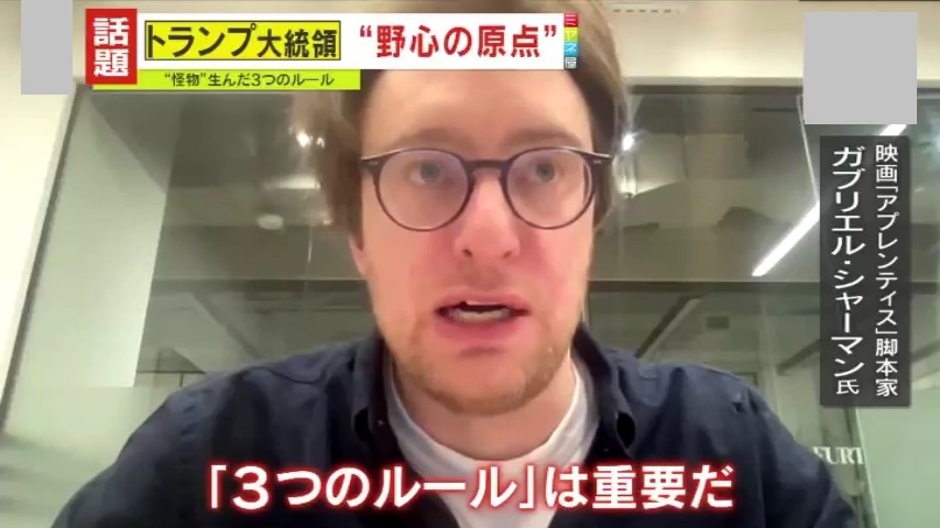 「トランプ氏の政治哲学・政治スタイルを理解するのに、『3つのルール』は必要だ。ロイ・コーン氏が伝えたルールを、今も守っていることが映画を見れば分かると思う。常に勝利を宣言し、攻撃を続け、敗北を認めず、全てを否定する。これらのルールは、外交分野・国内政治においても同様だ。3つのルールを辿ることで、現在、トランプ氏がどのような行動を取るかを理解できると思う」