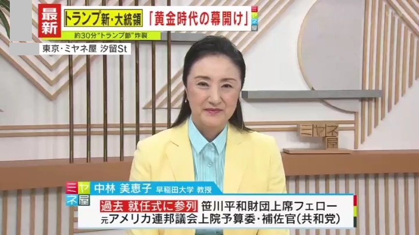 ドナルド・トランプ氏がアメリカ史上最高齢で大統領に就任し、強気な政策を打ち出しました。今後の第二次トランプ政権による世界への影響は?さらに映画『アプレンティス』の脚本家が語る、トランプ氏の野心の原点である『3つのルール』とは?元アメリカ連邦議会上院予算委・補佐官(共和党)で過去には就任式への参列経験もある早稲田大学・中林美恵子教授の解説です。