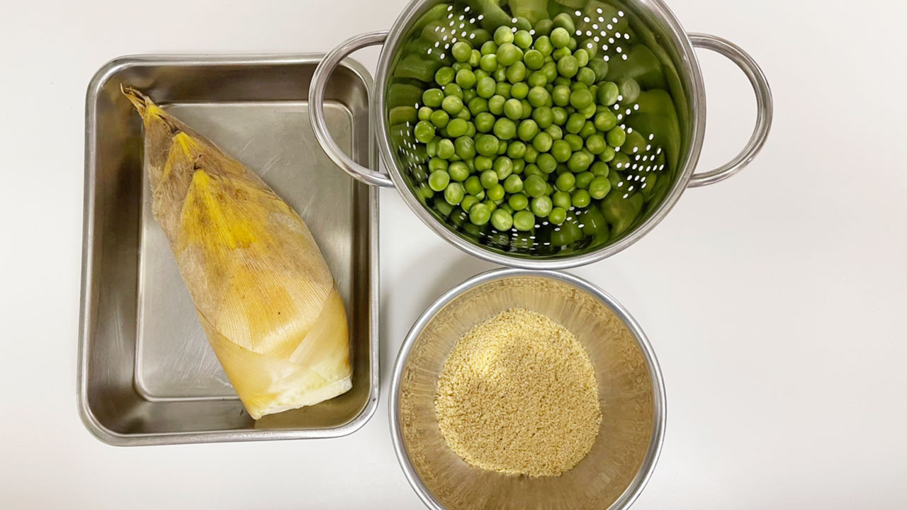 ② グリンピースをさっと茹でておく