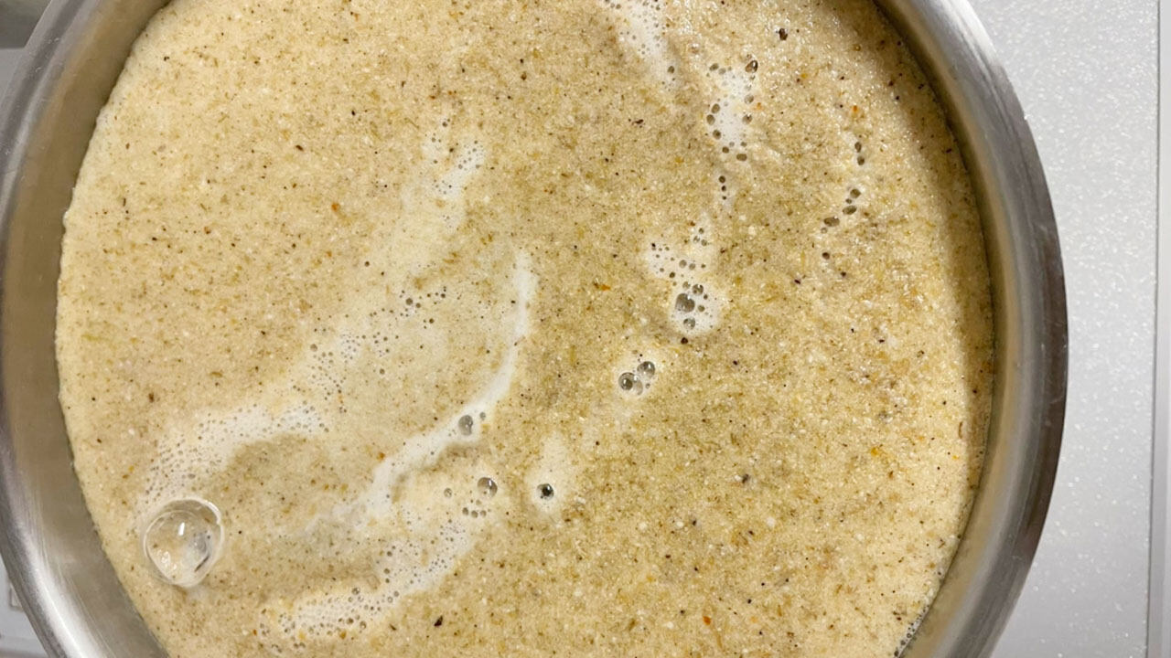 ② 米2合と酒30cc、薄口醤油30ccに出汁を合わせて炊飯器の目盛りに合わせて炊く