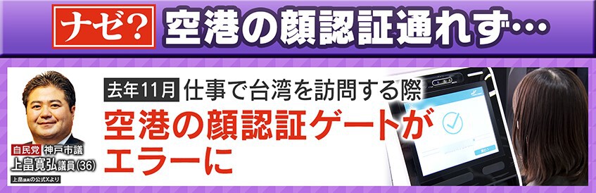 自民党の神戸市議・上畠寛弘議員は2023年11月、仕事で台湾を訪問する際、空港の顔認証ゲートがエラーになったそうです。
