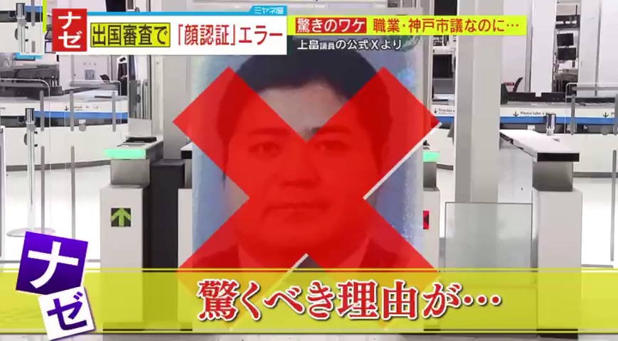 神戸市議が、海外に出国の際、空港の顔認証を通れなかったということですが、その驚くべき理由とは?