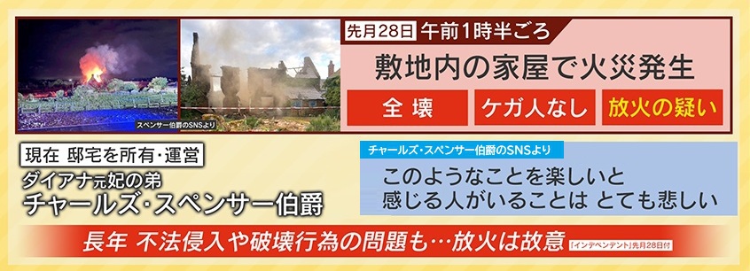 ■長年親しまれてきたダイアナ元妃ゆかりの地が放火被害に…