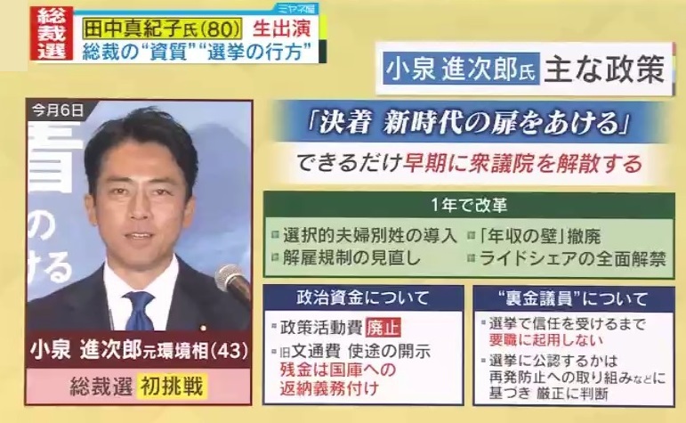 ―――小泉元首相の息子・進次郎氏は、43歳で初挑戦。「選択夫婦別姓の導入」「“年収の壁”撤廃」「解雇規制の見直し」「ライドシェア」「政策活動費」などを1年でやると言っていますが、どう思われますか?
