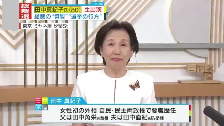 候補者が乱立する『自民党総裁選2024』。田中角栄元首相の長女で、女性初の外務大臣を務めた田中真紀子氏が、今回の総裁選をぶった斬ります。