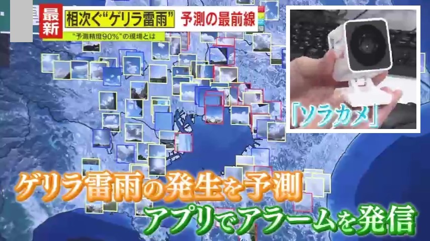 こうした気象条件に加え、全国のサポーター会員が設置した小型ライブカメラ『ソラカメ』から、リアルタイムで送られてくる雲の動画や、会員が撮影した写真などをAIで解析します。その雲の色や形などから、ゲリラ雷雨の発生を予測し、危険が迫っている地域に、スマホのアプリを通じ、アラームを発信する仕組みだといいます。