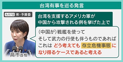 「外交とは、過去のことも将来のこともありますので、現在のことだけに振り回されることがないように、冷静に現実を分析して対応していくことが求められると思います。ただ、今回の(台湾有事を巡る)発言については、これは私の想像ですが高市首相が信念として持っておられたことなんでしょうけど、立場を考えると不用意だったと思います。首相の発言の重さ・影響力が世界にバッと伝播することを、あまりわかっていなかったのではないでしょうか」