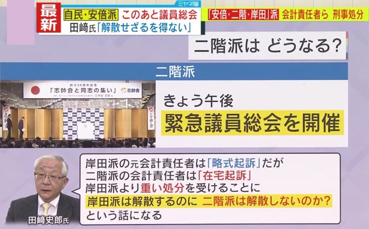 「解散する可能性はもちろんありますが、会長には二階俊博さんという非常にグリップの強い方がいて、安倍派のように会長がいない状態ではないので、いろいろ皆さんで話し合うのではないかと思います」