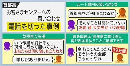 首都高速道路株式会社・CS・サステナビリティ推進部の恩田和典課長は、「今まで電話はこちらから切らなかったが、クレーム・罵声を浴びせられるなどがあり、社員を守るために導入した」「場合によっては、こちらから切ってもいいよという運用です」と話しています。