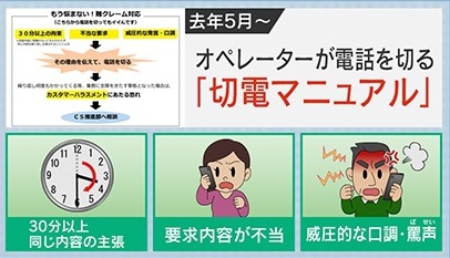 マニュアルが導入された2023年5月~2024年9月末までに、実際に電話を切ったケースは26件。お客さまセンター統括は、「恐怖を感じながらも、最後まで丁寧に対応いたしますが、電話が終わった後も精神的なストレスを感じたり、『電話が鳴るたびに不安に感じてしまう』という声も上がっている」と話していましたが、マニュアル導入後の変化として、「『安心した』『恐怖心がなくなり、より丁寧な対応をしようと前向きになれた』などの声が上がっている」ということです。