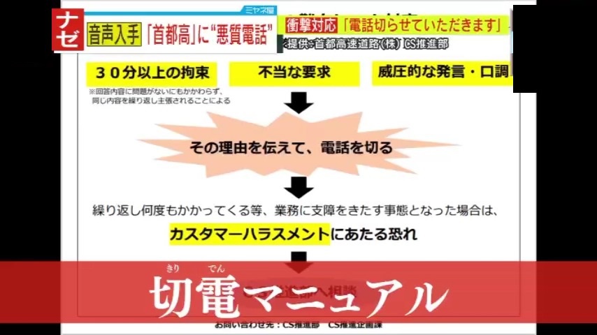 一向に減らない言葉の暴力『カスタマーハラスメント(カスハラ)』。電話対応のオペレーターたちは日々対応に苦しみ、心を痛めています。そんな中、『首都高速道路株式会社』が策定したのは、威圧的な口調などがあった時は電話を切ってもいいという『切電(きりでん)マニュアル』。大企業が下した“強気の決断”―その背景とは?