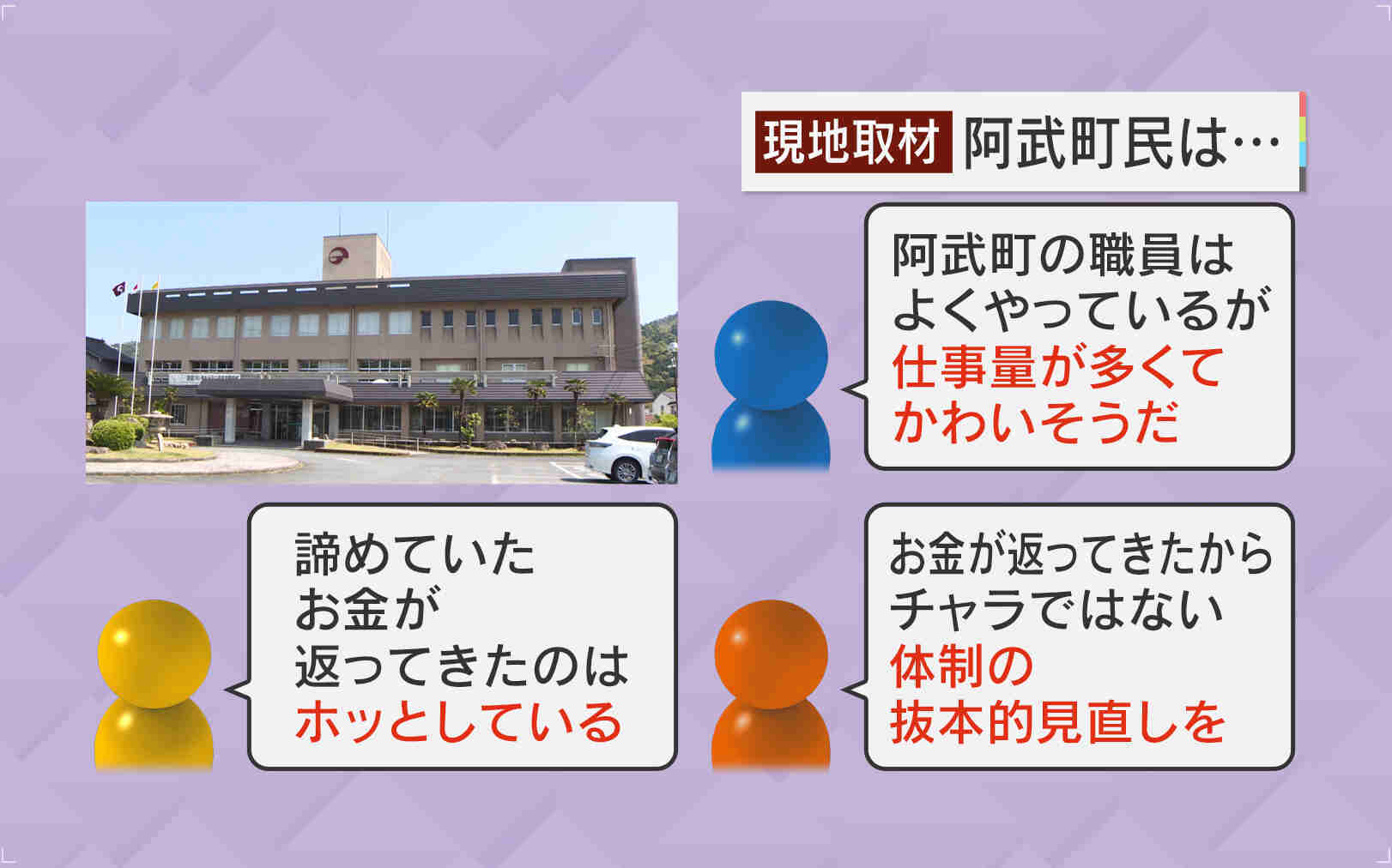 「『諦めていたお金が返ってきたのはホッとしている』や『阿武町の職員はよくやっているが、仕事量が多くてかわいそうだ』という意見とともに、『お金が返ってきたからチャラではない。体制の抜本的見直しを』という厳しい意見もありました」