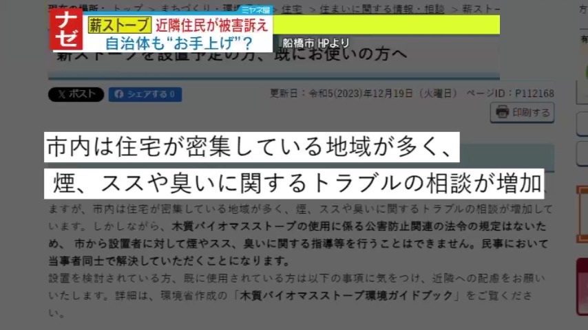 ■人気再燃『薪ストーブ』の“煙害”巡るトラブル 住民は「当たり前の生活ができなくなった」と被害を訴え