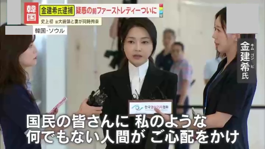 すると2025年8月13日未明に、斡旋収賄などの疑いで逮捕されました。任意による聴取で進展が見られなかったため、検察は逮捕して強制捜査に切り替える構えだということです。大統領経験者の妻が拘束されるのは、韓国の憲政史上初めての事態です。