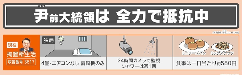 一方、自身が出した“非常戒厳”に関連して、2025年7月に2度目の逮捕となり、ソウル拘置所に収容されている、夫のユン前大統領は一体どのような生活を送っているのでしょうか。