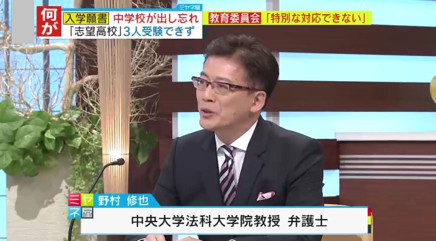 私立「博多女子中学校」の教員が、公立高校の入試の願書を出し忘れ、生徒3人が志望校を受験できなかった問題。「ミヤネ屋」の取材に対し、受験できなかった生徒の保護者が悲痛な胸の内を吐露しました。将来の希望を胸に受験に挑むはずが、その権利すらも奪われるという異常事態。なぜ願書を一括で管理していたのか?柔軟な対応ができなかったワケは?そこには“福岡”ならではの事情が…弁護士・野村修也氏の解説です。