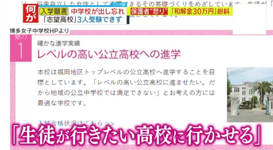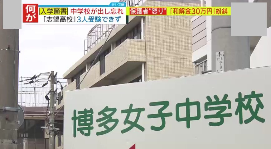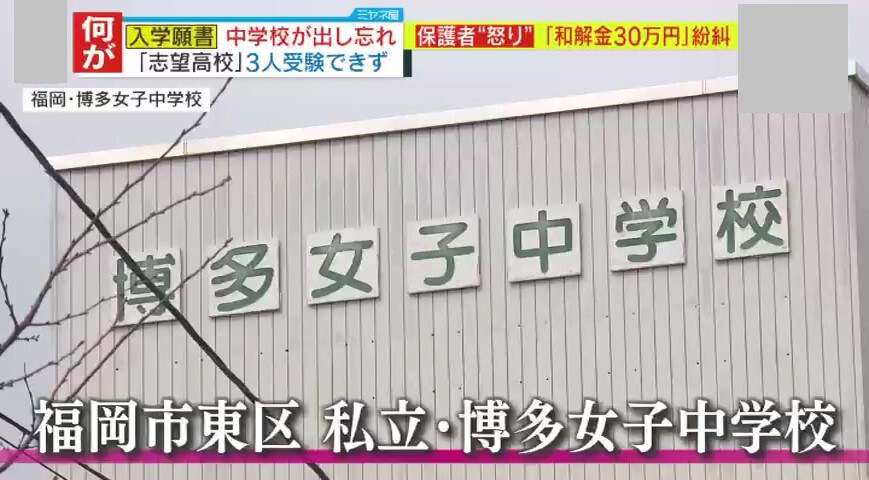 【独自】「何のためにお宅の学校に通わせたのか!」『博多女子中学校』教員が願書“出し忘れ”…保護者説明会のやりとりを独自入手 被害生徒の保護者が激白「“慰謝料的な感じ”で、『お宅は第1志望なので、20万円上乗せして50万円。これ以上、これ以下もない』」