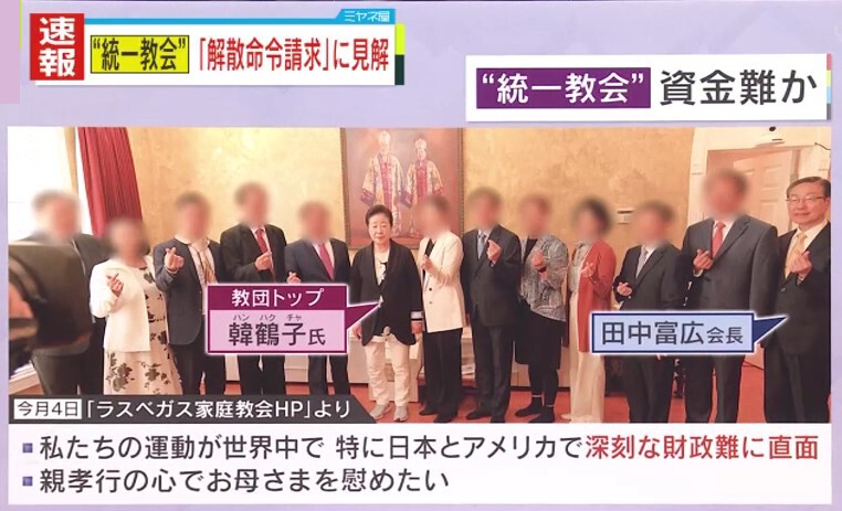 「僕が事前に入手した情報では、先週ラスベガスで世界主導者会議というものが開かれて、日米韓の幹部が集まりました。その場で韓鶴子総裁が、日本の今の状況に激怒したと。9月ぐらいまでは日本の大陸会長が『解散命令請求は出ないだろう』と楽観的な報告をしていたといわれる中、『解散命令請求』が出たため韓鶴子総裁が激怒して、一説では、日本の幹部を引責辞任させ、記者会見を開いて、そこで謝罪をさせて幕引きを図ろうとしたのではないかということでした」