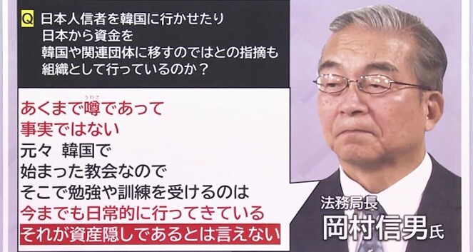 Q.一部報道では、大量の日本人信者を韓国に行かせたり、日本から資金を韓国や関連団体に移すのでは?との指摘も出ていました。