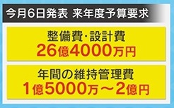 そんな中、2024年11月6日に発表された来年度予算要求によると、世界最大の噴水を作るために必要な費用は整備費・設計費合わせて26億4000万円。年間の維持管理費が1億5000万円~2億円です。