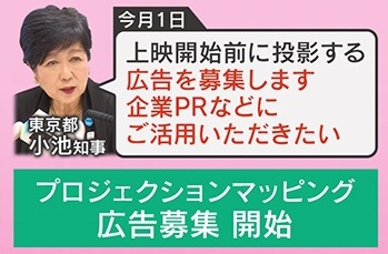 そんな中、東京都・小池知事は批判を吹き飛ばす“秘策”に打って出ました。2024年11月1日、「上映開始前に投影する広告を募集します。企業PRなどにご活用いただきたい」として、プロジェクションマッピングの広告募集を開始したのです。