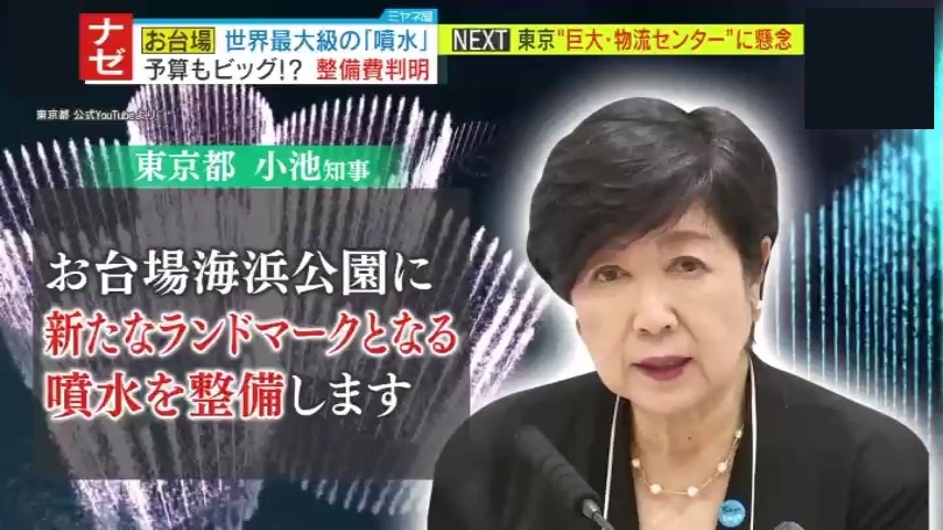 東京観光・インバウンド盛り上げの起爆剤『都庁のプロジェクションマッピング』に、観光客から歓喜の声があがる一方、十億円単位の予算に都民からは疑問の声も。そんな中、小池知事は批判を吹き飛ばす“秘策”に打って出ました。さらに、 お台場海浜公園に約26億円の“噴水”整備を計画中。日本の首都・東京に一体、何が―。