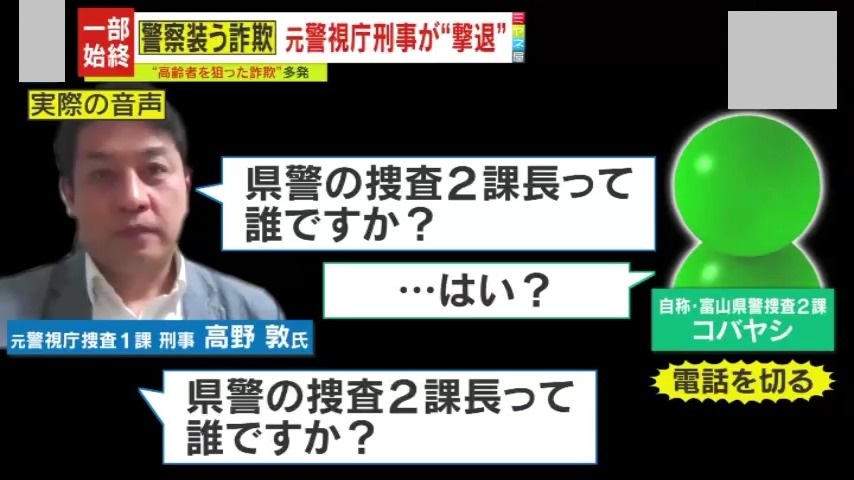 「急に『捜査協力で富山県警にきょう行ってくれないか』というふうに言い始めた。そんなことはあり得ないんで、詐欺電話がとうとう来たなと」