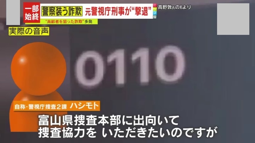 【一部始終】元警視庁刑事にかかってきた詐欺電話…その手口と撃退方法とは?電話番号末尾の『0110』に要注意 全国での特殊詐欺被害が過去最多で警察庁も新たな取り組みへ―
