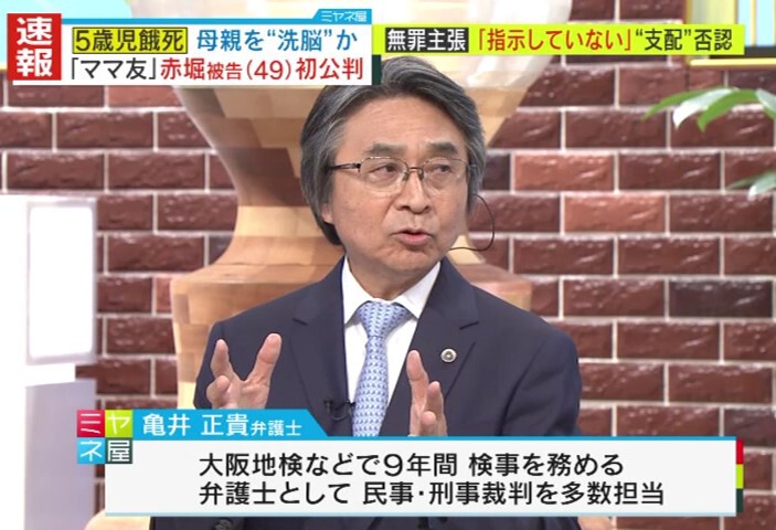 2020年4月、福岡県篠栗町で5歳の男の子が餓死した事件。2022年6月、母親の碇利恵(いかり・りえ)被告(40)が保護責任者遺棄致死罪に問われ、懲役5年の実刑判決が言い渡されました。そして8月29日、その母親を精神的に“支配”していたとされる「ママ友」の赤堀恵美子(あかほり・えみこ)被告(49)の初公判が始まりました。赤堀被告の裁判での争点を大阪地検元検事の亀井正貴(かめい・まさき)弁護士が解説します。