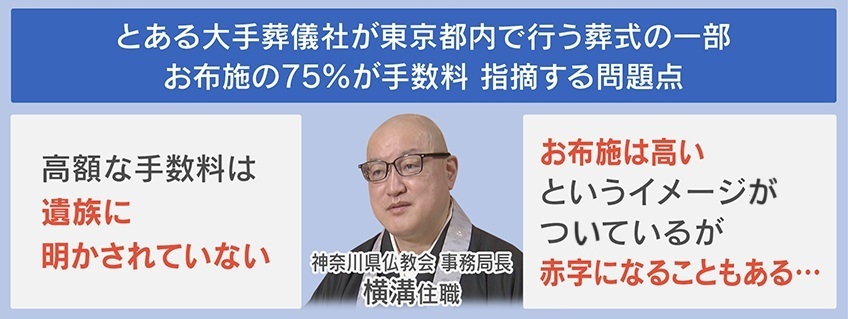 この問題について横溝住職は、「高額な手数料は遺族に明かされていない。お布施は高いというイメージがついているが、赤字になることもある」ということです。
