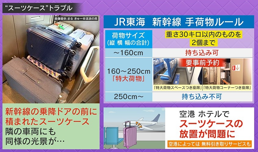 ■「正直あきれた」新幹線内の“スーツケース”、置き方に物議